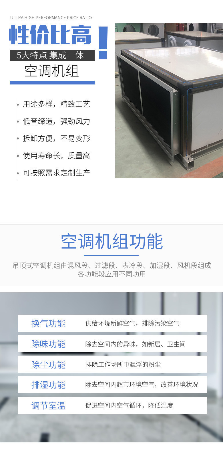 生产厂房内用吊顶式新风换气空调机组远程射流 性能稳定 规模生产
