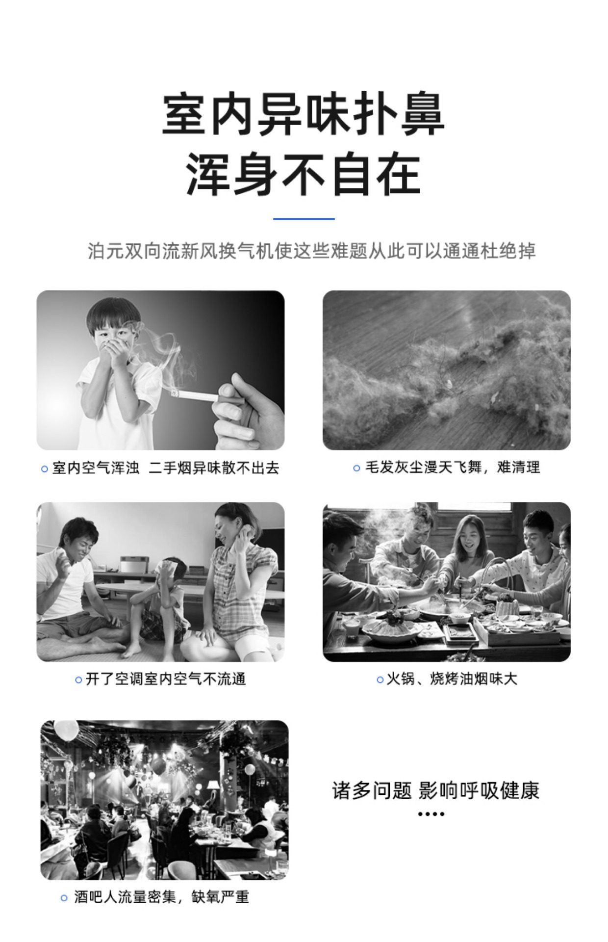 新风系统家用全屋通风换气双向流新风机商用排风网吧餐厅地下室